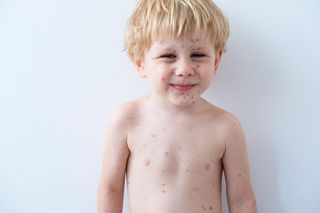 Отличительная особенность ветрянки — групповое появление кожных высыпаний, за счет чего все пузырьки на кожных покровах лица и тела имеют разные стадии развития. В наиболее тяжелых случаях кожная сыпь носит генерализованный характер, распространяясь на лицо, верхние и нижние конечности, а также все тело. Чаще всего она проявляется локально, но почти всегда на верхней части тела.