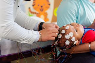 ЭЭГ ребенку — это современная диагностическая методика, при которой оценивается электрическая активность головного мозга. Процедура проводится с использованием чувствительного оборудования: на поверхность головы крепится специальная система из электродов, объединенных в эластичную шапочку. Эти датчики улавливают импульсы, исходящие из разных отделов мозга, и передают их на компьютер.