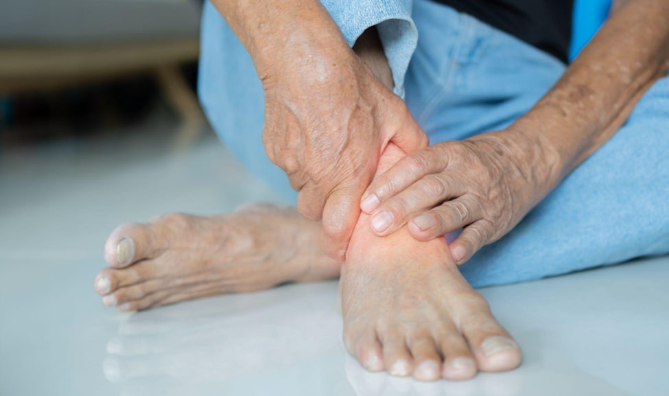 При обменных нарушениях, например при подагрической форме, в тканях скапливаются кристаллы мочевой кислоты. Они вызывают резкие приступы боли и отек. Если заболевание не контролировать, развивается хроническая стадия, которая сопровождается разрушением хряща и стойким ограничением подвижности.