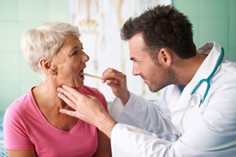 - пальпацию подчелюстной и шейной зоны для выявления увеличенных лимфоузлов;