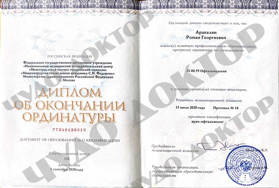 2020г. - Межотраслевой Научно-технический Комплекс "Микрохирургия глаза" им. академика С.Н. Федорова, Москва, НОЦ, Офтальмология