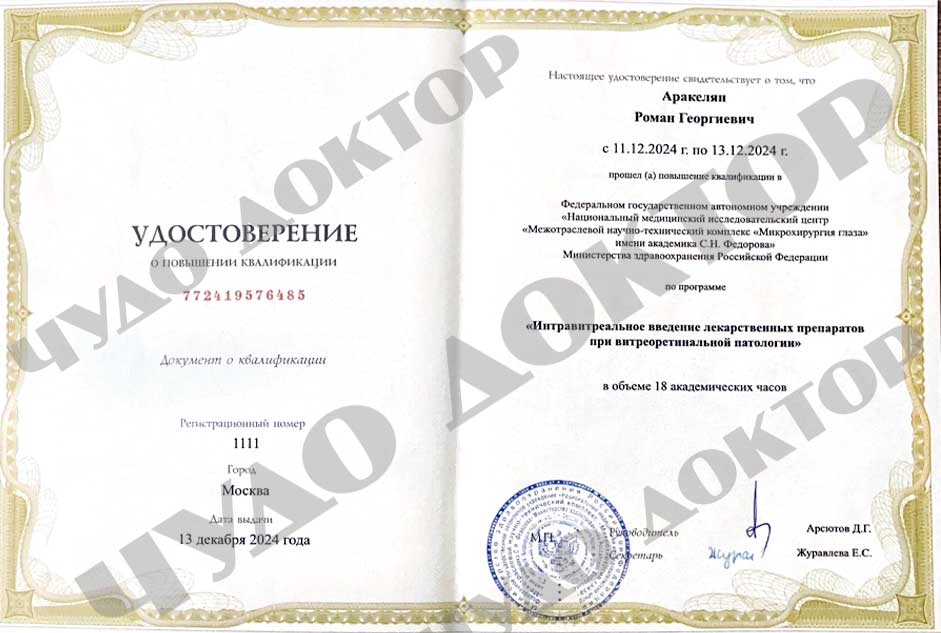 2024г. - Интравитреальное введение лекарственных препаратов при витреоретинальной патологии МНТК микрохирургии глаза им. С. Н. Федорова г. Москва