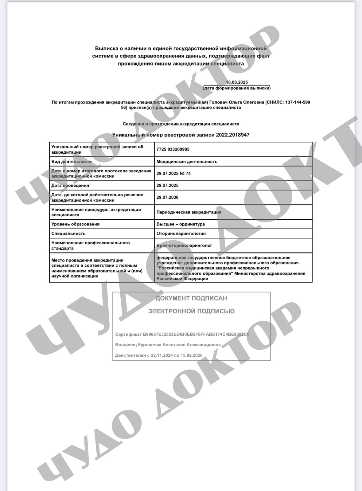 Головач Ольга Олеговна
