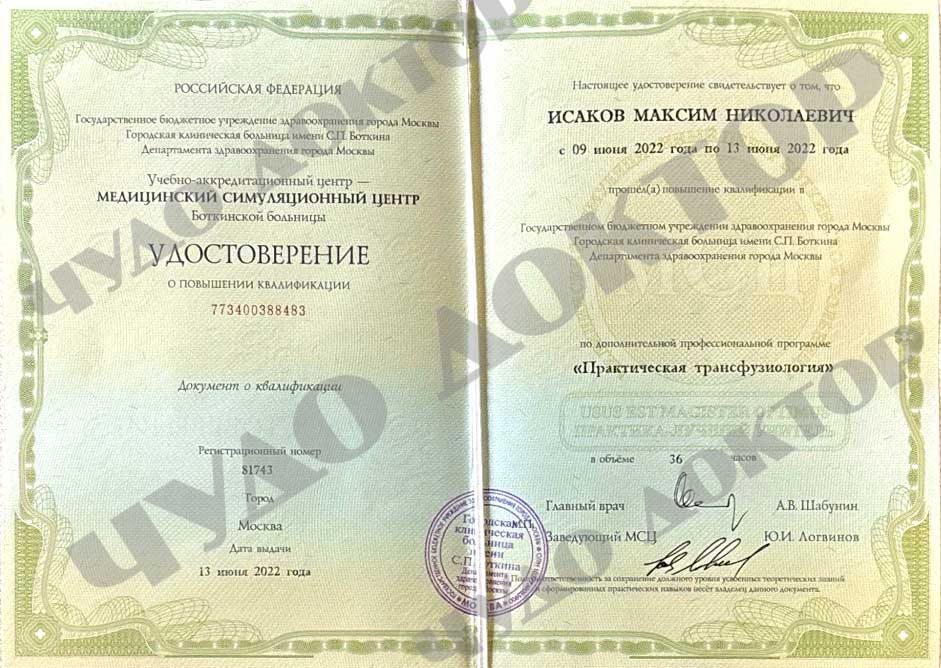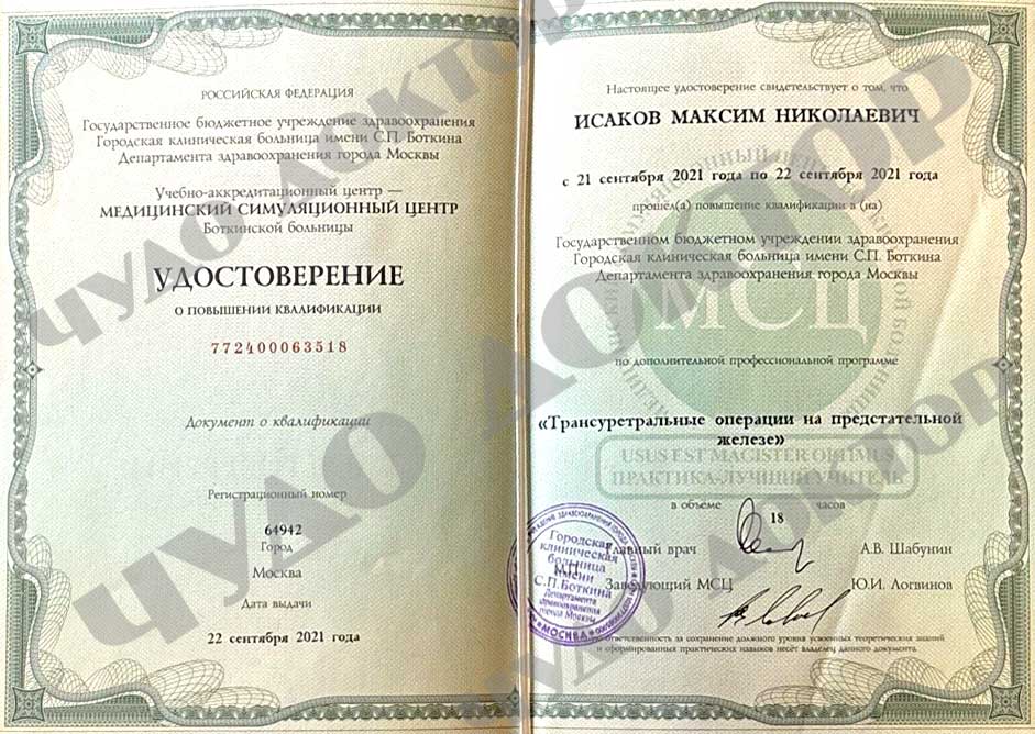 2021 г. Городская клиническая больница имени С.П. Боткина Департамента здравоохранения города Москвы по циклу «трансуретральные операции на предстательной железе»