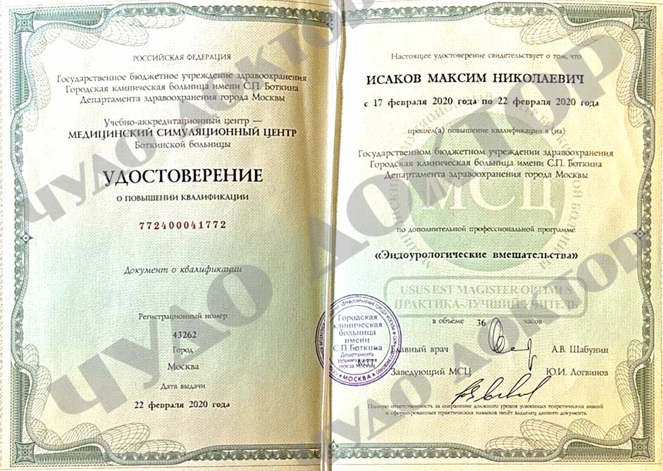 2020 г. Городская клиническая больница имени С.П. Боткина Департамента здравоохранения города Москвы по циклу «эндоурологические вмешательства»
