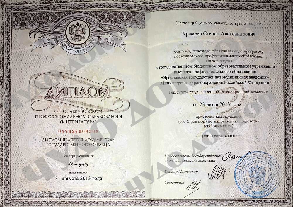 2013 г. - Ярославская государственная медицинская академия, интернатура, рентгенология