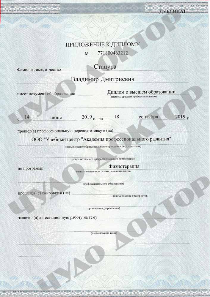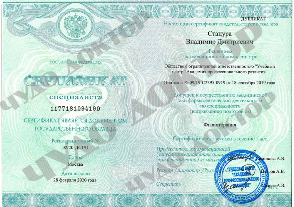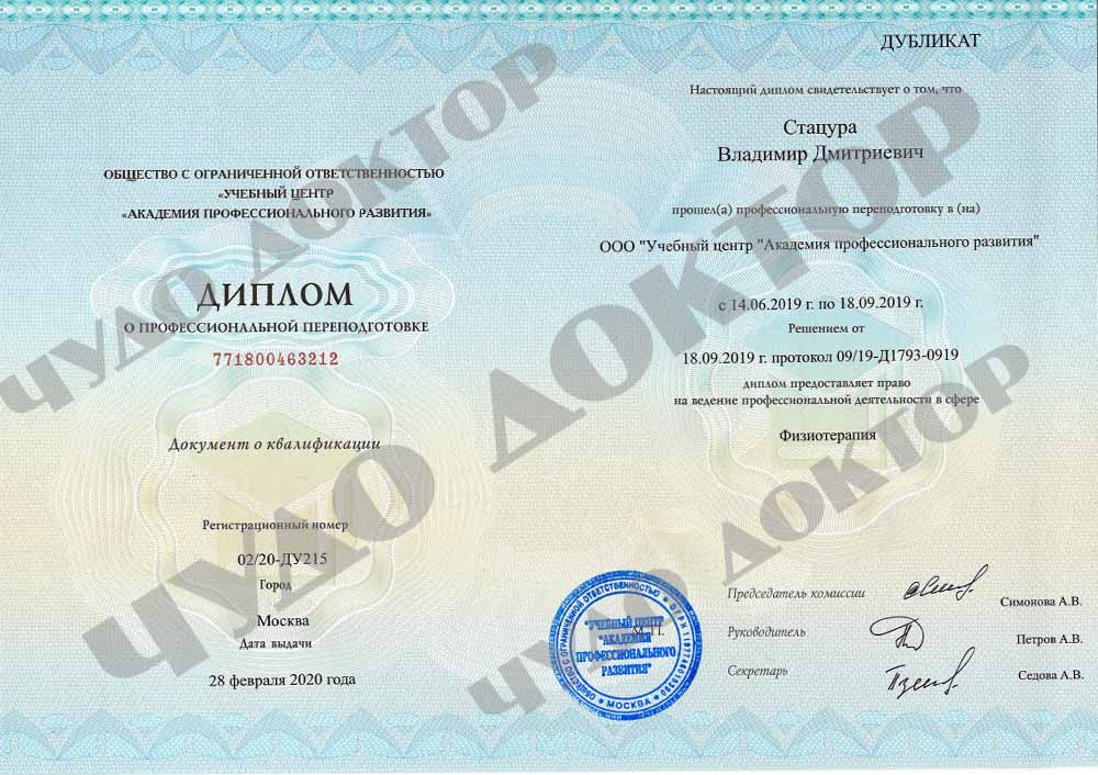 2019 г. — Академия профессионального развития. "Рефлексотерапия"
