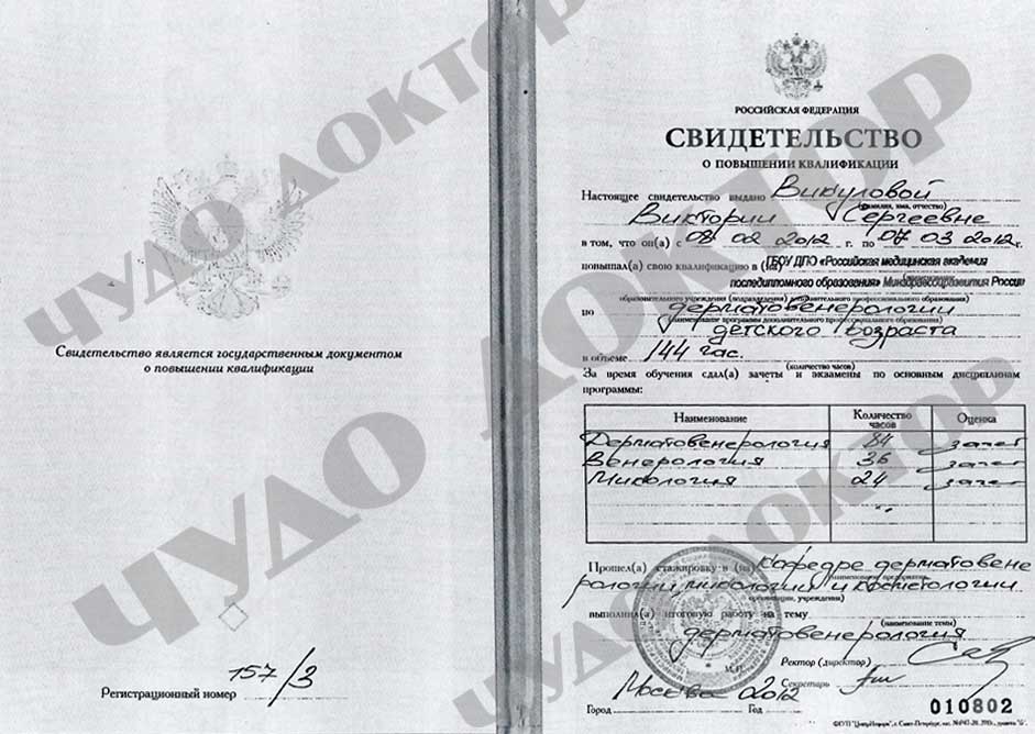 2012г. «Дерматология детского возраста» ГБОУ ДПО «Российская медицинская академия последипломного образования» Минздравсоцразвития России.