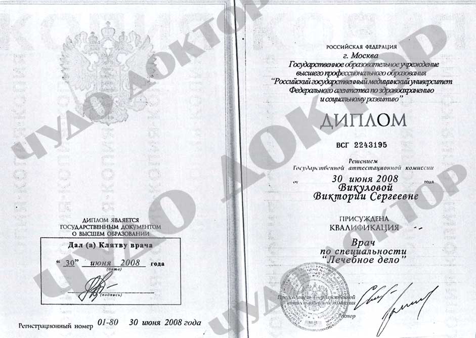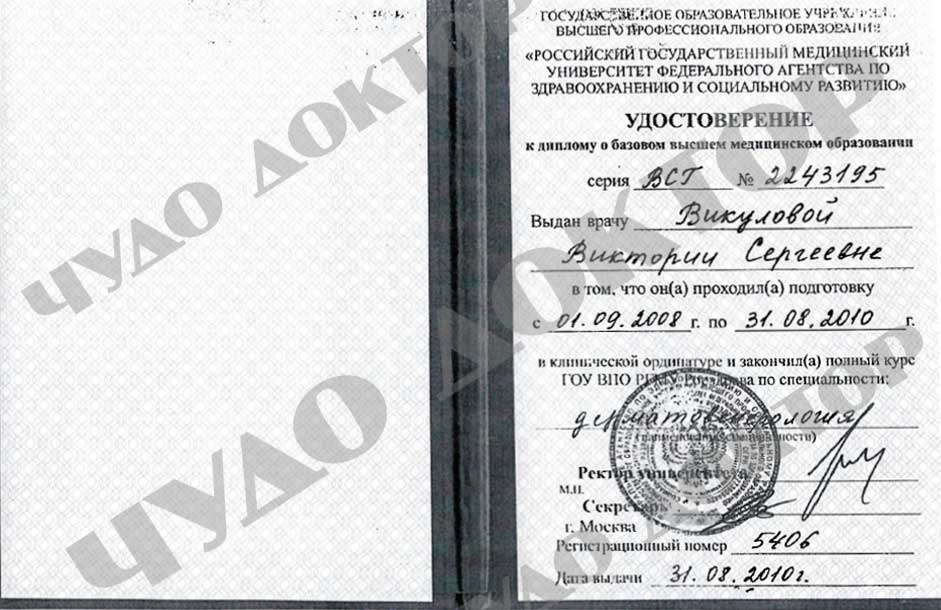 2008г. - Российский национальный исследовательский медицинский университет имени Н.И. Пирогова, Лечебное дело, Косметолог, Дерматолог