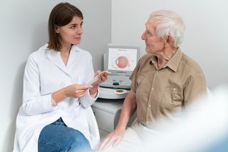 пациенту капают капли, чтобы расширить зрачок и обеспечить лучший доступ к тканям глаза;